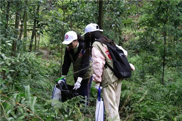 志愿者在缙云山自然保护区内开展巡山护林、垃圾清理等志愿服务。