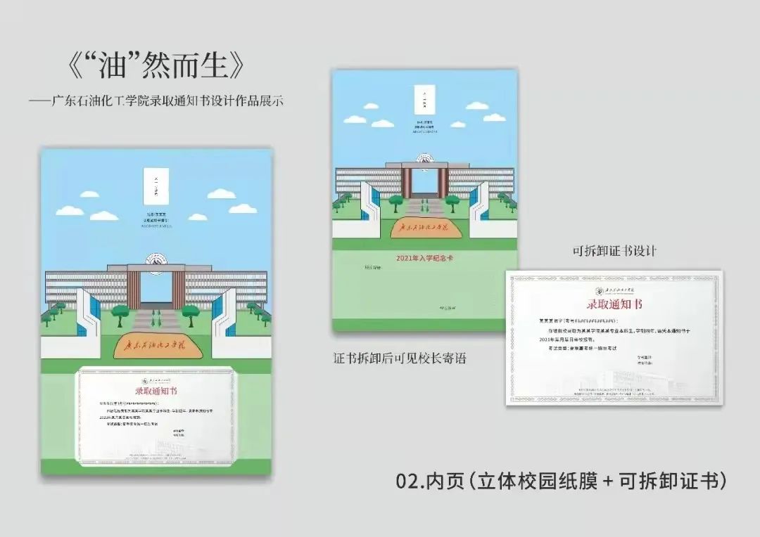 作品应端庄大气,使用的元素和整体设计能彰显广东石油化工学院文化底蕴与内涵特色,展示广油人的精神风貌,作品内容应积极向上,符合大众审美,构思新颖独特。须考虑录取通知书邮寄及收藏实际控制作品尺寸。