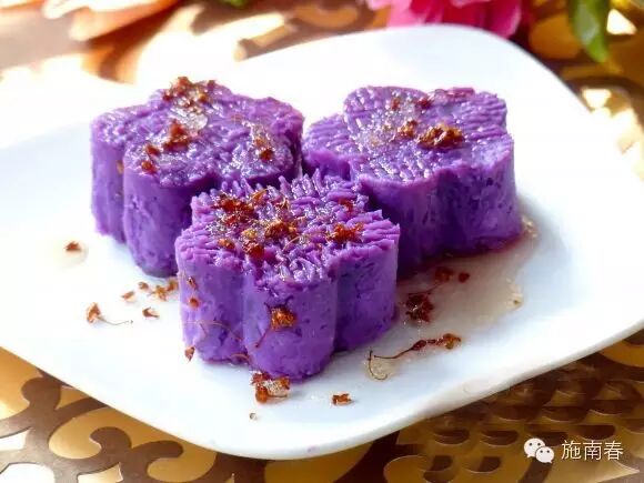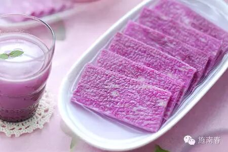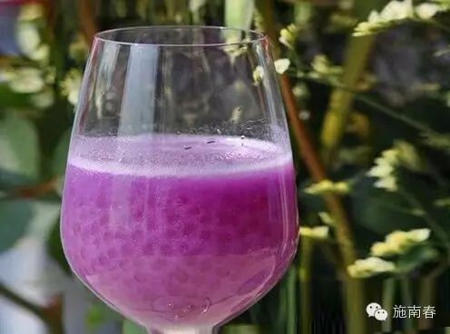 高级饭店常将其煮熟后打成汁,加西米,做成色泽迷人的饮品——紫玉西米露: