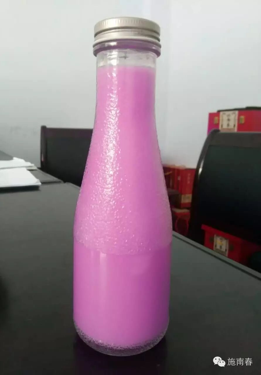 纯天然紫山药汁,不添加任何人工色素,瓶装如图: