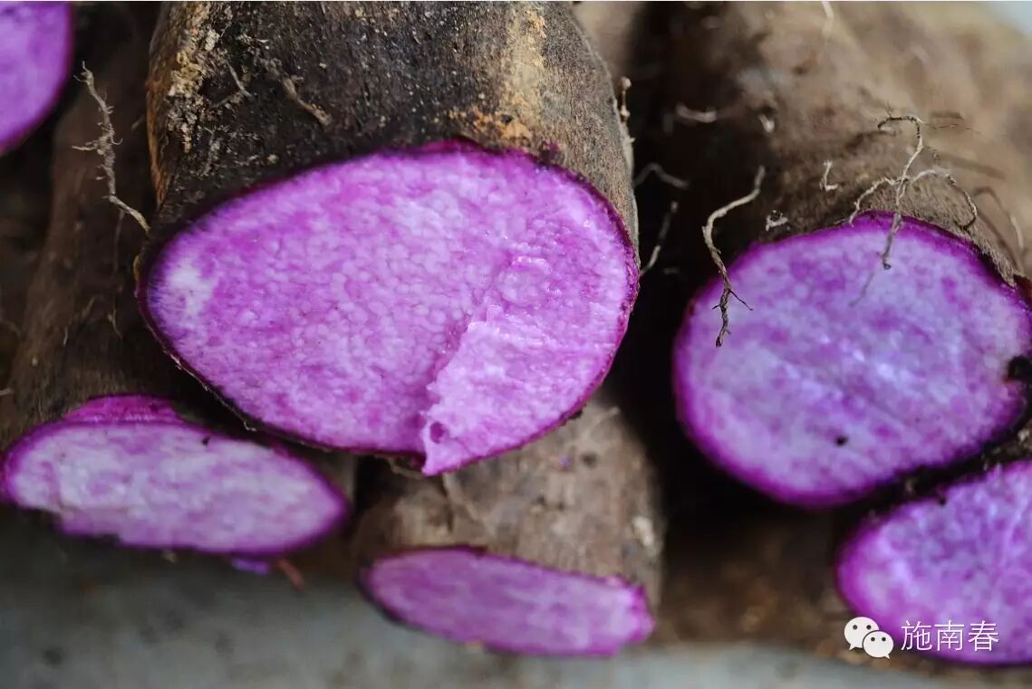 紫山药,因肉质呈紫红色而得名,也称紫玉淮山。同时,因含有人参的主要成分“皂苷”,而被誉为“紫人参”。其淀粉、总糖、锌等营养物质,比普通山药要高出20多倍。紫山药的花青素含量是普通山药的60倍,健脾养胃名目益气,对眼睛有很好的保健作用。