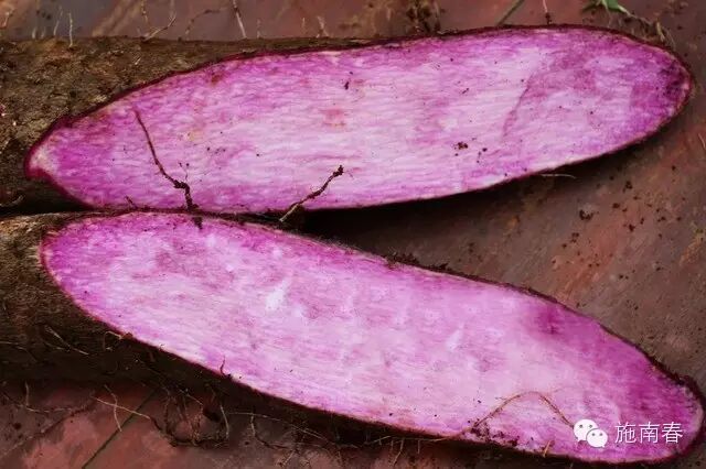 紫山药肉质鲜嫩爽滑,甘润可口,口感绝妙,既是餐桌上的佳肴,又是保健药材,还是不可多得的高级食补品。